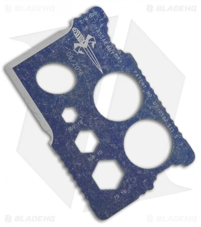 The Marfione Custom Assailant is a titanium credit card knife that provides outstanding cutting potential and convenience. This model has a distressed purple DLC finished with the Marfione Dagger logo on the face along with the date of production. It features jimping around the edges for added grip, and 3 handy bit drivers. The cutting edges are carbidized for edge retention. Item comes in a black nylon Microtech bi-fold wallet with a purple anodized titanium Marfione Dagger patch and fleece-lined interior.