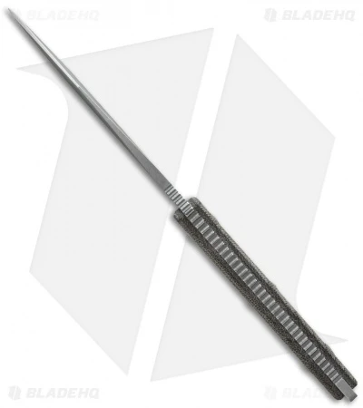 Based on the popular Microtech Socom, the Marfione Custom Socom Alpha Clip Point is a fixed blade variation of the original folder. This knife has a hand ground, stonewash finished blade with satin flats. The full-tang blade features notches around the perimeter and green canvas Micarta scales. The front side of the hollow ground blade is marked with the Marfione Dagger logo, as is the premium leather sheath from MTR Custom Leather.