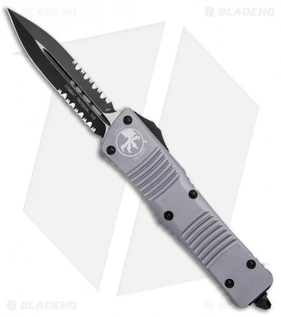 Microtech’s largest OTF production knife is named after the Troodon dinosaur. The Combat Troodon is the really large version of the popular Troodon. Despite the size, the handle feels slim and comfortable. The double-edged dagger style blade is both attractive and functional and the action is Microtech excellent.