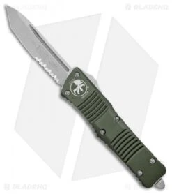 This Combat Troodon has a stonewash finished Tanto style blade with a partially serrated edge. The handle is OD green anodized aluminum with bead blast finished steel glass breaker, pocket clip and hardware. Includes nylon sheath.