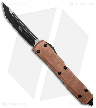 This Blade HQ Exclusive Ultratech model features a collectible copper top handle and a black finished tanto blade. The handle is contoured and outfitted with a black finished pocket clip, glass breaker, and stainless steel hardware.