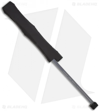 This rare Nemesis OTF knife features a Damascus dagger blade with a unique and beautiful pattern. The firing button and safety are two-tone black finished and the screws are plain black. These Nemesis knives have the custom Marfione dagger logo and each knife is individually serialized. Charging handle is marked “A. Marfione 11/2010 Nemesis IV S/N 010”