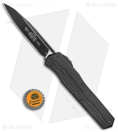 The Microtech Cypher OTF is a production version of the popular A. Marfione / D.C. Munroe custom collaboration. This model is equipped with a black finished, single-edged blade. Its stylized handle is made from lightweight aluminum with a black anodized finish and a titanium milled pocket clip and endpiece.