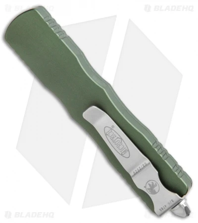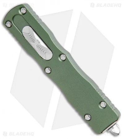 This Microtech Dirac features a dagger blade with a stonewashed finish. The handle is OD Green anodized 6061-T6 aluminum with blasted hardware.