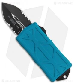 - Black, CA legal dagger blade with double serrations made from premium stainless steel.