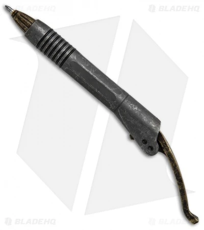 The Siphon is a unique folding or lever-action pen and a stylish writing instrument from Microtech. The pocket clip unfolds and the pen tip is revealed. Made of stainless steel and fitted with a black Pilot ink gel cartridge (replaceable).