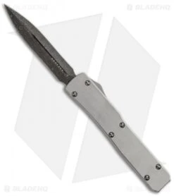 This Marfione Custom Ultratech features a brushed stainless steel handle with satin hardware. The double-edge dagger blade is stainless steel Damascus that has been hand ground by Anthony Marfione. The side of the handle is discreetly marked with the Marfione Dagger, date and serial number.