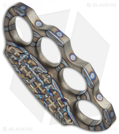 This stylish paperweight/knuckle from Tony Marfione at Microtech knives is an excellent accessory for your desk. It is made from a solid piece of 1/2″ thick titanium that has been ergonomically milled for comfort. Each piece has a unique heat colored finish, and will vary from the picture. These come in a super high quality Marfione padded zipper case and metal Marfione dagger patch.