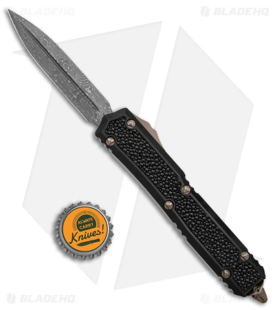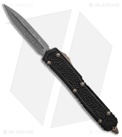 This Microtech Marfione Makora II is a custom knife from Blade Show East 2022! It has a Damascus steel dagger blade and a black handle with a stingray inlay.