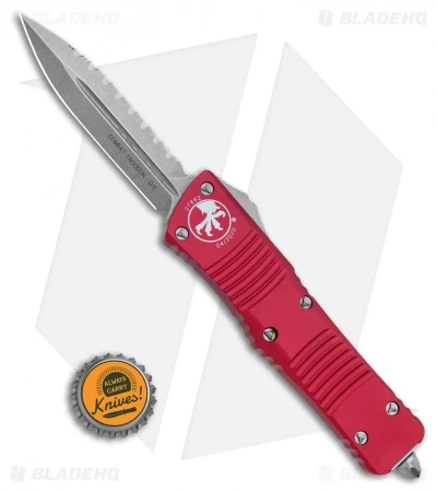 This limited edition Combat Troodon features a red anodized aluminum handle with bead blast finished steel glass breaker, pocket clip and hardware. It has a premium stainless steel dagger blade with a stonewash finish and plain and fully serrated edges.