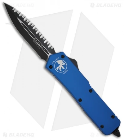 The Microtech Scarab is perhaps the mother of all out-the-front automatic knives. The Scarab is double-action meaning it fires both out and in via the slide button located on the right side of the knife. Action, lock-up and quality are all top-notch Microtech.