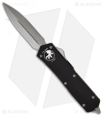 The Microtech Scarab is perhaps the mother of all out-the-front automatic knives. The Scarab is double action meaning it fires both out and in via the slide button located on the right side of the knife. Action, lock-up and quality are all top-notch Microtech.